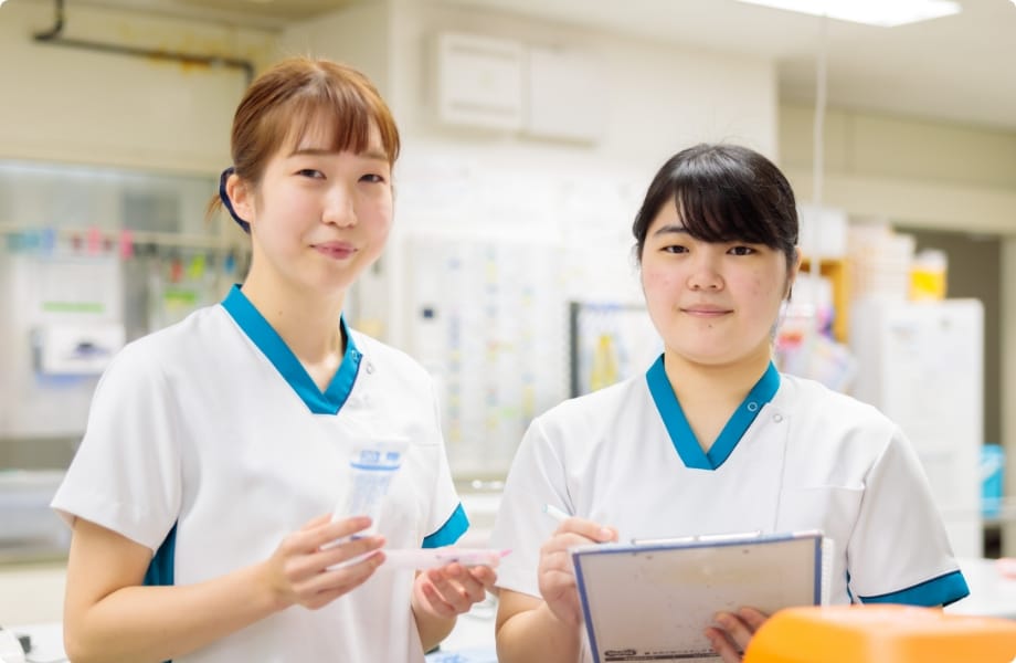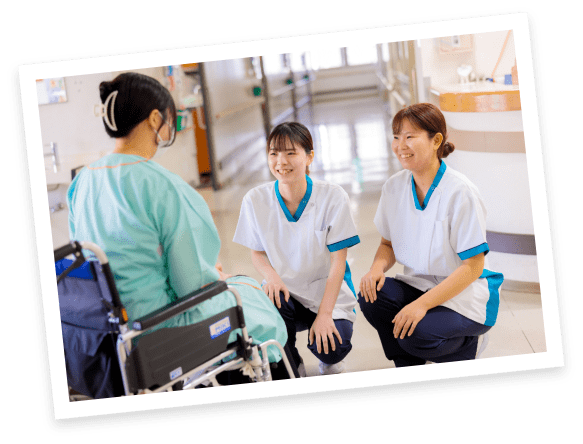 貝塚病院の看護部では、看護職員が互いに協力しながら、日々患者さんに質の高い看護を提供しています。そのためには、看護師一人ひとりが、看護の仕事に誇りを持ち、心からの充実感を得ることが大切と考えています。