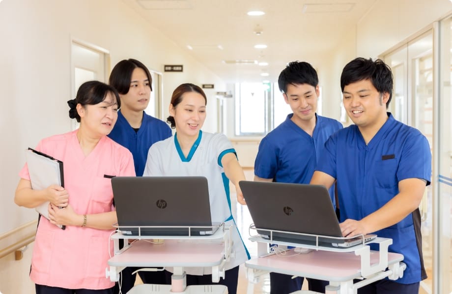 多職種と協働・連携したチーム医療を行っています。部門や職種を超え、常に患者さんを中心に考えた医療へ取り組んでいます。職種の力を最大限発揮できるようコミュニケーションがスムーズな職場です。